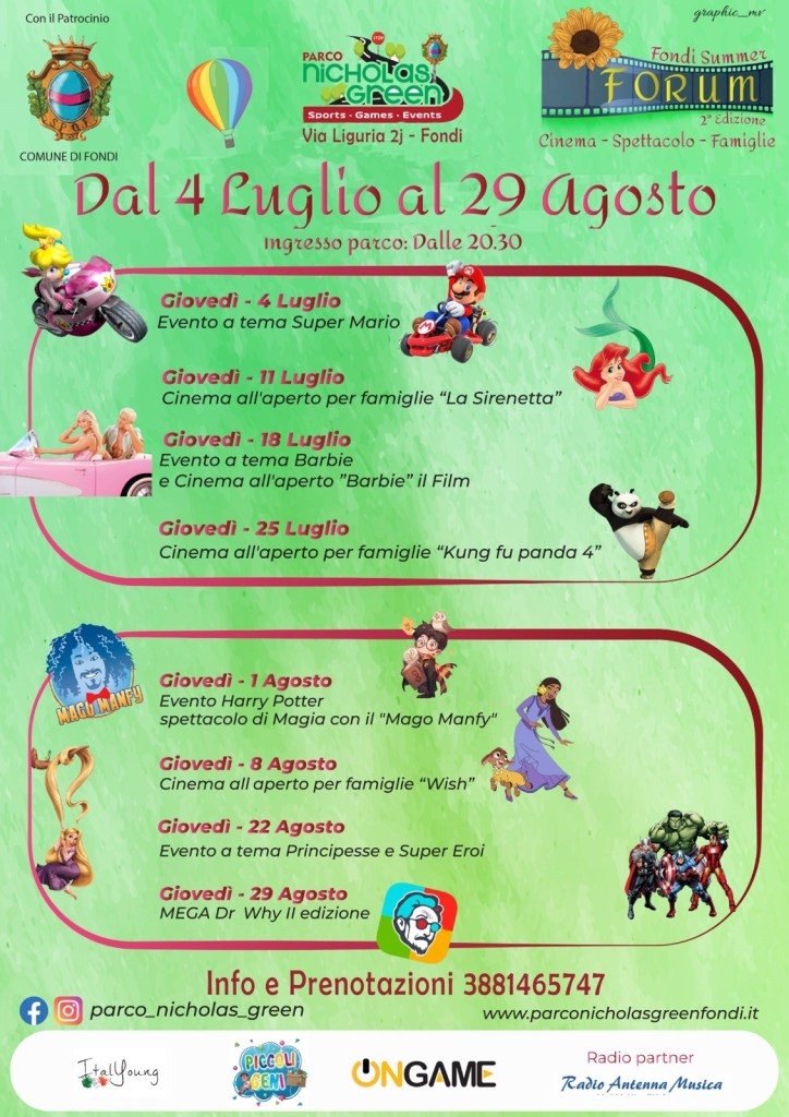 L’iniziativa, denominata Fondi Summer Forum, è ormai giunta alla sua seconda edizione e si svolgerà presso l’area di via Liguria, per il secondo anno gestita dai volontari del sodalizio presieduto da Danilo Pannozzo.