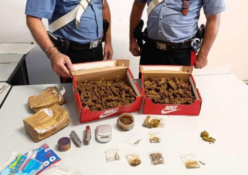 Pertanto veniva estesa una perquisizione domiciliare che ha permesso di rinvenire ulteriore stupefacente con il sequestro di complessivi 675 grammi di marijuana e 70 di hashish, oltre a materiale vario dedito al peso e confezionamento della droga (un bilancino di precisione, 2 coltelli intrisi di stupefacente, molteplici bustine termosaldate).