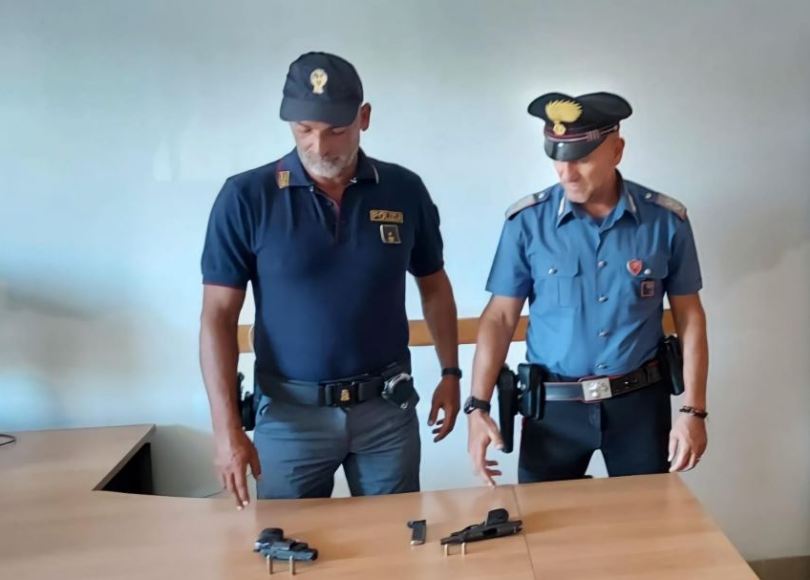 I due sono stati trovati in possesso di un proiettile calibro 7,65 rinvenuto addosso al 45enne e di alcune armi, poco prima nascoste dagli stessi dietro un manufatto presente nel piazzale del distributore, come ricostruito da fonti testimoniali e dalla visione delle telecamere di video-sorveglianza reperiti nell’area.