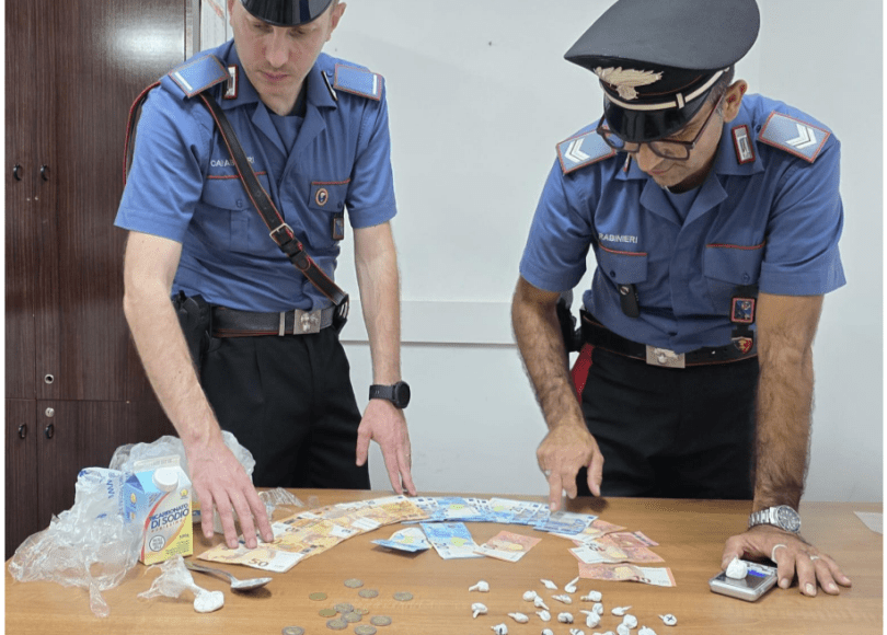 31 involucri termosaldati, in cellophane, bilancino di precisione, materiale vario per il taglio e confezionamento, nonchè denaro contante pari ad oltre 800 euro, in tagli da 50, 20 e 10 nella disponibilità del 37enne;
