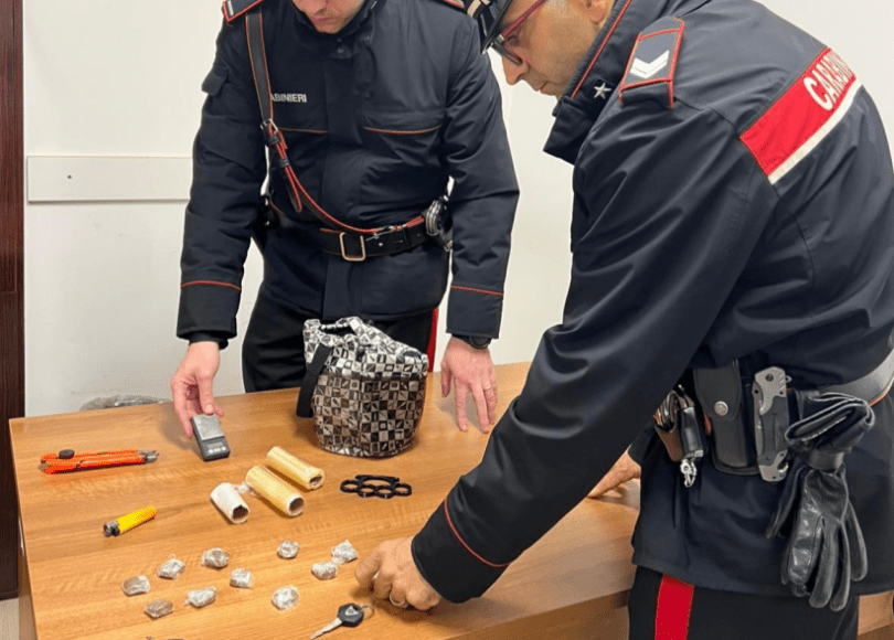 Nello specifico, l’indagato è stato sottoposto a perquisizione delegata dall’Autorità Giudiziaria, nel corso della quale i militari, nel vano porta oggetti del motociclo in uso all’indagato hanno rinvenuto un tira pugni e 50 grammi circa di hashish, suddiviso in 11 dosi, nonché materiale vario per il confezionamento, un bilancino ed un taglierino. La predetta attività è stata delegata dall’Autorità Giudiziaria che ha condiviso le risultanze delle indagini condotte dai carabinieri di Fondi a seguito di un’aggressione avvenuta lo scorso 16 novembre, allorquando l’indagato aveva aggredito con un coltello un giovane del luogo, procurandogli una ferita da taglio alla mano, per poi dileguarsi a bordo del motociclo.