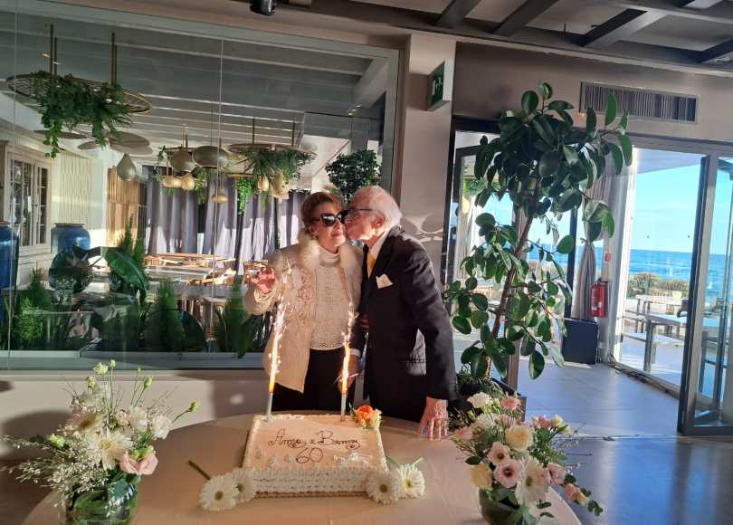 Da sempre attivi nella comunità pontina, fondatori della delegazione di Latina dell’Accademia Italiana della Cucina, ora soci onorari, hanno reso lustro al loro grande impegno con un prestigioso ricevimento, accompagnato dalle raffinate note del Sax, al Fogliano Hotel New Life in un’incantevole sala ricevimenti, affacciata sul mare con vista Circeo. Il menù, ricercato e particolare, realizzato con il pescato a Km 0, è stato annaffiato dai sorprendenti vini della Cantina Villa Gianna. Anna e Benny hanno espresso la loro gratitudine a tutti coloro che hanno fatto parte della loro vita, rendendo questi 60 anni di matrimonio un cammino ricco di amore, felicità e crescita.