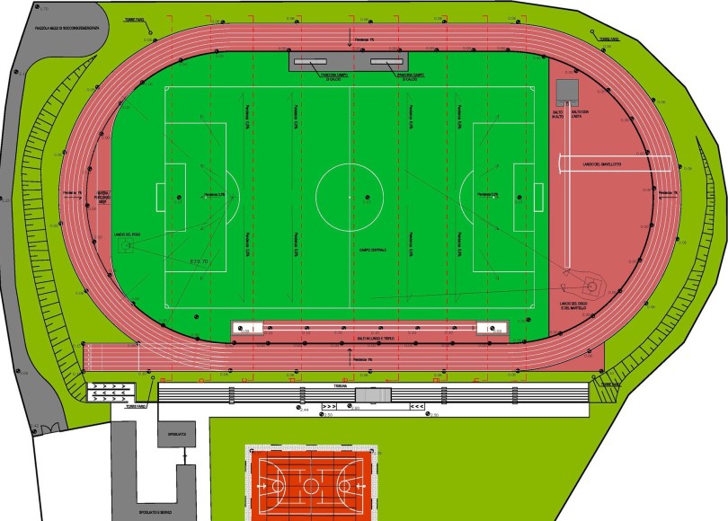 L’importo complessivo per portare a termine la ristrutturazione degli impianti ammonta a 2.229.003 euro, in parte finanziata con fondi pubblici e la restante a carico dell’amministrazione comunale. Attualmente sono stati aggiudicati e lavori ed è di prossima realizzazione il primo lotto che riguarda il campo sportivo e la pista di atletica circostante mentre l’ulteriore lotto prevede il ripristino funzionale della tribuna esistente, della tensostruttura polifunzionale, l’adeguamento e ripristino degli spogliatoi, l’installazione di impianto fotovoltaico e delle sistemazioni esterne