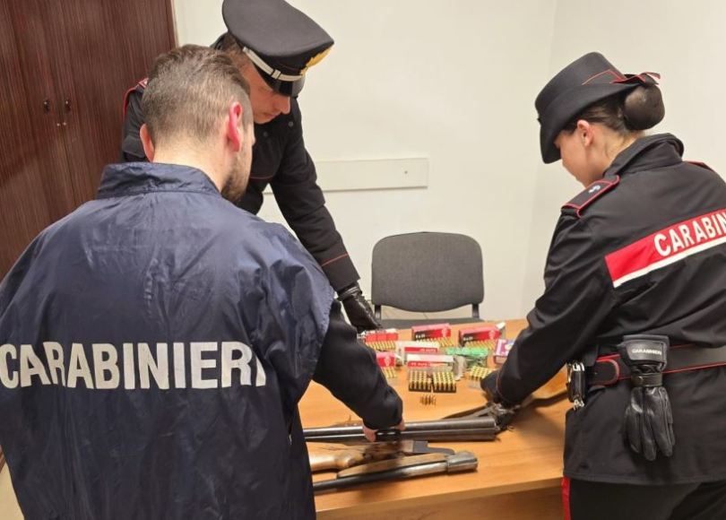 Nello specifico, i militari dell’Arma hanno sottoposto a perquisizione domiciliare l’arrestato rinvenendo nella sua disponibilità due fucili, di cui uno artigianale risultato da accertamenti provento di furto, 150 cartucce cal. 9 X 21, 8 cartucce calibro corto, 50 cartucce cal. 7 X 65, 47 cartucce cal. 357, 97 cartucce cal. 45 e 50 cartucce cal. 9, il tutto abilmente occultato in una intercapedine realizzata sotto il solaio della propria abitazione. Tutto il materiale è stato sottoposto a sequestro. L’arrestato, espletate le formalità di rito, su disposizione dell’Autorità Giudiziaria è stato tradotto presso la Casa Circondariale di Latina.