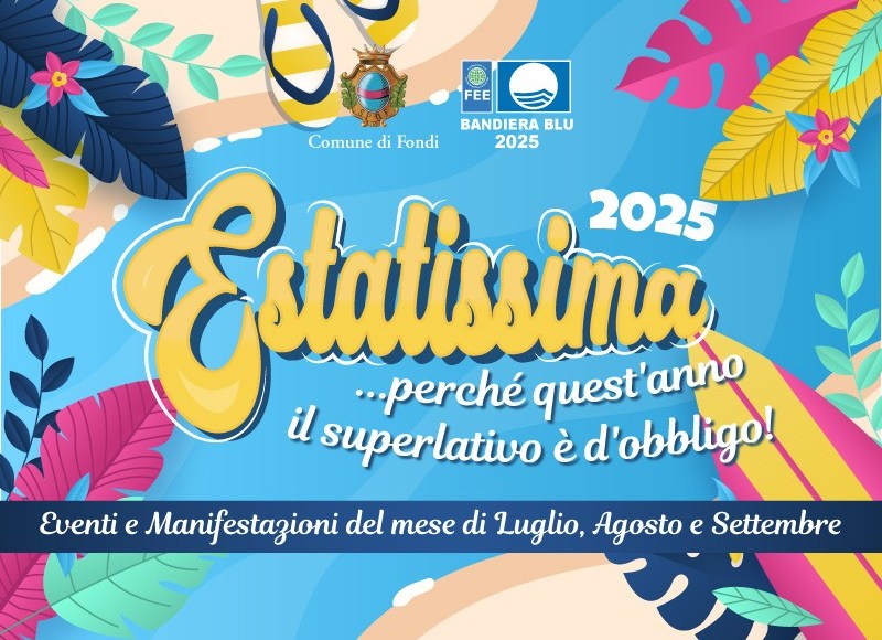 Dopo l’anteprima del mese di giugno, con tante iniziative promosse dall’associazionismo fondano, è online il cartellone degli eventi in programma a Fondi nei mesi di luglio, agosto e settembre. Il nome scelto è “Estatissima 2025” e, come recita lo slogan di quest’anno – ultimo del quinquennio amministrativo in corso – il superlativo è d’obbligo.