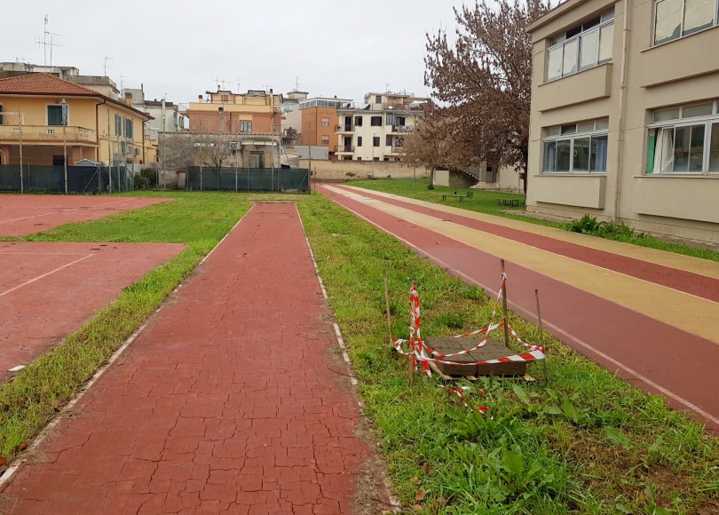 È previsto il rifacimento completo dei campi sportivi all’aperto, quali pista di atletica, salto in lungo, calcetto/basket, pallavolo (rimozione delle esistenti pavimentazioni e sottofondi, il rifacimento di tutte le pavimentazioni sportive, le recinzioni, attrezzaggio e segnatura dei campi). Inoltre la realizzazione di piastre per il posizionamento di panchine per gli atleti.
