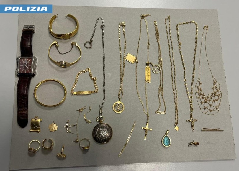 Fermati per accertamenti, i poliziotti hanno rinvenuto nell’abitacolo un cacciavite di grandi dimensioni e, a seguito di perquisizione personale e veicolare, numerosi monili e oggetti in oro per un peso complessivo di circa 250 grammi, dal valore stimato di 17mila euro, successivamente sequestrati.
