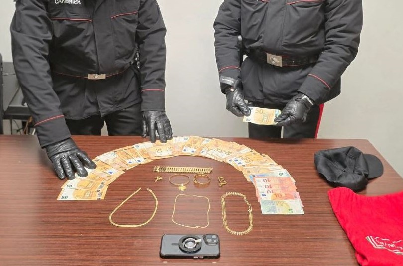L’uomo, a bordo di un veicolo risultato a noleggio, stava tentando di disfarsi della refurtiva, che è stata recuperata e successivamente restituita alle aventi diritto. Nel corso della perquisizione personale e veicolare, i militari hanno rinvenuto una banconota da 50 euro contraffatta, sottoposta a sequestro.