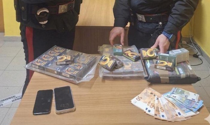 Nel corso degli accertamenti i carabinieri hanno deciso di eseguire una perquisizione personale e veicolare e, all’interno del vano bagagli, hanno rivenuto poco meno di 8 chilogrammi di sostanza stupefacente del tipo hashish, suddivisa in 74 panetti, nonché la somma in contanti di 765 euro, ritenuta provento dell’attività illecita.