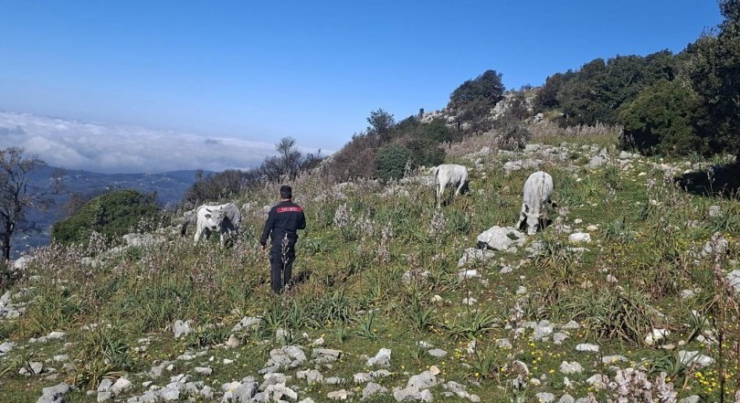 Nei giorni scorsi carabinieri del Nucleo Forestale di Priverno, a seguito di attività di controllo ambientale del territorio, hanno accertato in località M. Martavello, area Campo Volo, nel territorio comunale di Roccasecca dei Volsci, la presenza di dieci bovini al pascolo senza custode in un’area boscata, di proprietà comunale, che da ulteriori approfondimenti investigativi è risultata essere stata percorsa dal fuoco nel corso degli anni, ultima nel 2025.