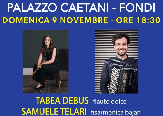 Domani, domenica 9 novembre, alle ore 18:30, secondo appuntamento al Palazzo Caetani di Fondi con I Concerti dell’Accademia degli Sfaccendati.I bravissimi Tabea Debus flautista e Samuele Telari fisarmonicista bajan presenteranno