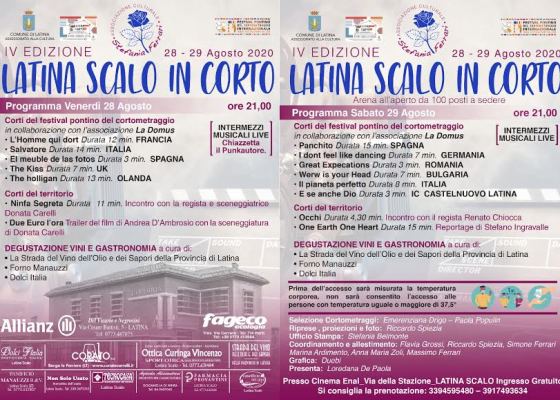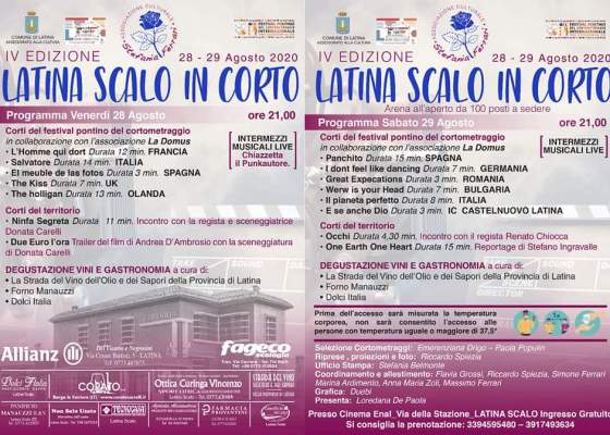 Venerdì 28 e sabato 29 agosto torna “Latina scalo in corto”, evento giunto alla sua quarta edizione. Nelle due serate