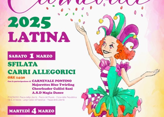 Sabato 1° marzo 2025 Latina, dopo cinque anni, si vestirà nuovamente a festa per il Carnevale con la sfilata dei