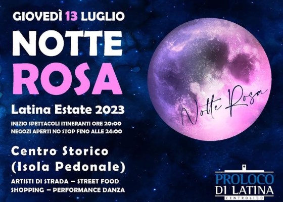Giovedì, 13 luglio, “Notte rosa” in pieno centro a Latina, tra artisti di strada, spettacoli di danza e street food.