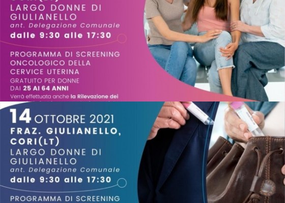 Il tour di screening oncologico organizzato dalla Regione Lazio e dalla Asl giovedì 14 ottobre farà tappa a Giulianello, nel Comune di