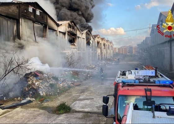 Aprilia: Grosso incendio in via Enna, in fiamme 4 capannoni da 1500mq ciascuno