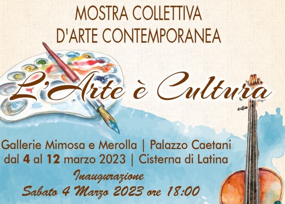 Verrà inaugurata sabato prossimo, 4 marzo, alle ore 18 a Palazzo Caetani, la mostra collettiva d’arte contemporanea “L’arte è cultura”.