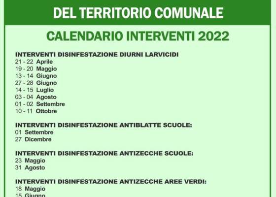 Proseguono gli interventi di disinfestazione e derattizzazione del territorio comunale.Il primo e il 2 settembre prossimi verrà eseguito l’intervento di