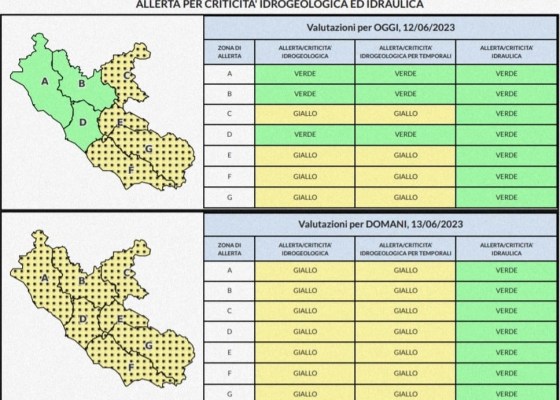 Torna il maltempo nella regione Lazio. Dal pomeriggio di oggi,12/06/2023, e per le successive 6 ore, e dalla tarda mattinata
