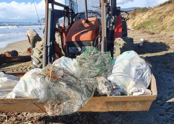 Ottavo giorno di pulizie straordinarie sul litorale di Fondi dopo che le recenti mareggiate hanno inondato la spiaggia di rifiuti.Con