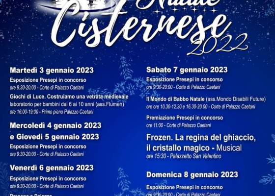 Un inizio di 2023 ricco di appuntamenti a Cisterna. Si inizia domani, martedì 3 Gennaio, presso la Corte di Palazzo