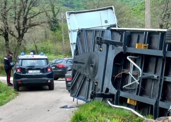 Campodimele: Si ribalta un Tir in via Piano, paura e tanti disagi